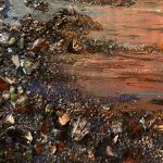 Part of Gina Wolfrum’s signature Gemstone Series, this work features jade, jasper, obsidian, dacite, tourmaline, carnelian, mica and glass, each adding unique sparkle and dimension to the scene.