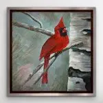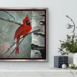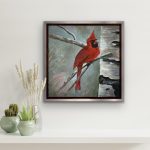 Serenity perched in perfect balance. This bold cardinal rests against the soft glow of a winter backdrop, bringing warmth and life to the quiet calm of the season. Subtle shimmer from mica and glass glitter highlights the feathers and frosty branches — catching the light like sun on fresh snowfall.