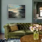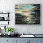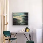 The painting’s rich depth and detail invite viewers to explore its romantic essence, offering a sense of calm and wonder. Encased in a sleek bright silver metallic frame, this artwork exudes both modern elegance and timeless beauty, making it a striking centerpiece for any space.