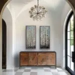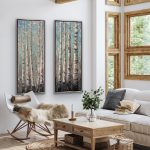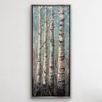 A quiet winter morning unfolds among these slender birches, their trunks catching the first pale light of day. Textured glass beads, mica, and fine glitter bring a soft shimmer to the branches, inviting you to lean in and notice how the scene shifts as you move. A peaceful moment suspended in frost and light.