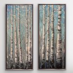 Soft winter hues and delicate frosted branches create a soothing, luminous atmosphere in this serene birch grove. Sparkling textures add dimension and depth, revealing new highlights with every change of perspective. A tranquil reminder of the beauty found in stillness.